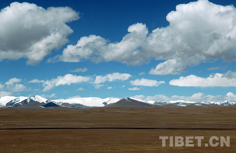 驅(qū)車(chē)行進(jìn)在藏北高原,放眼望去,經(jīng)??梢?jiàn)如此景象:朵朵白云緩緩地飄動(dòng)在天空,與之緊貼的是積雪覆蓋的山峰。那一座座雪山緊密相連,呈一字形無(wú)盡綿延。山頂、山腰和起伏的山脊上,到處雪花飛舞,積雪不停地閃著銀光。遇到天晴,在高原陽(yáng)光的照射下,那白雪又變幻地染成了金色、黃色或金黃色。這里真乃一年四季都是冰封雪飄的蕭瑟寒冬,即使在盛夏,也是銀裝素裹。在這些高大雪峰下,是那些平鋪的草原、湖泊、村莊、田野和江河。它們隨時(shí)令變化,與那些終年飛舞著雪花的雪山和堆積著的白雪,構(gòu)成了五彩繽紛的世界,美不勝收。