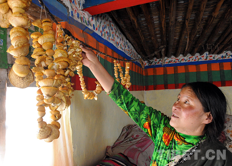 這是斯求卓瑪術(shù)后在當(dāng)?shù)卣顿Y建設(shè)的安居房新家晾曬草原野生蘑菇(唐召明2012年8月3日攝)