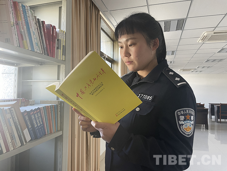 圖為西藏林芝背崩邊境派出所民警李倩在閑暇的時候閱讀紅色書籍 攝影:呂恒剛