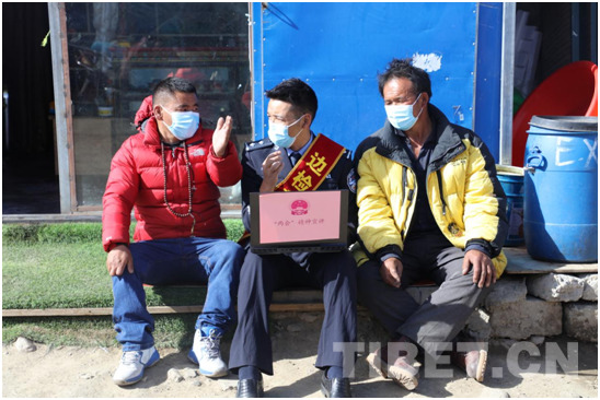圖為民警“兩會”精神宣講活動現場 格熱攝