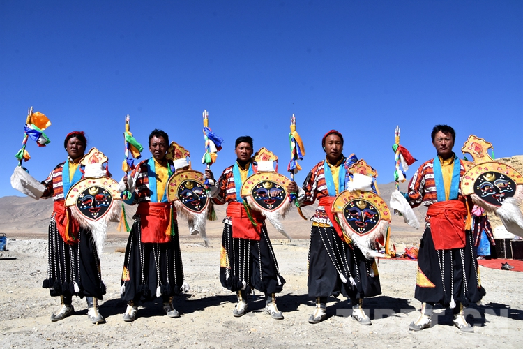 中國西藏網(wǎng)訊 西藏自治區(qū)日喀則市薩迦縣雄麥鄉(xiāng)曲堆村藏戲,以前與薩迦寺跳神相提并論,后面因種種原因,在民間失傳了很長時間。據(jù)當?shù)乩先私榻B,曲堆村藏戲隊,其表演形式、服裝、道具等風格屬于覺木隆藏戲類別。