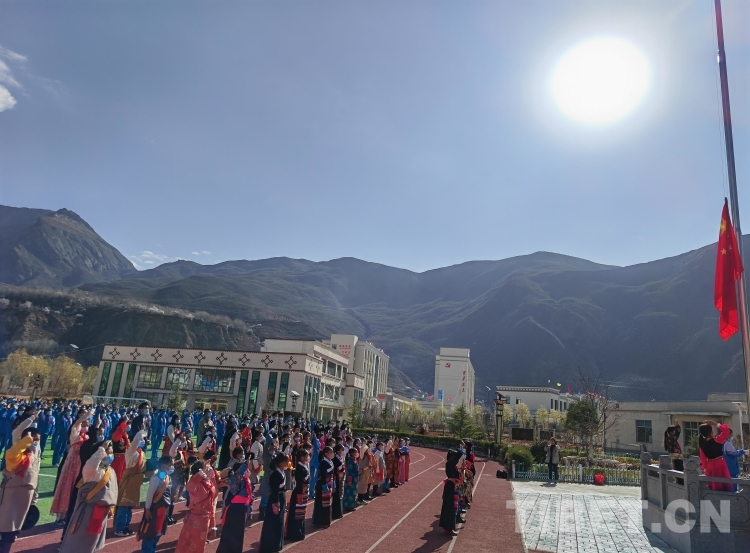 28日上午,全校師生共計(jì)800余人參加慶祝活動(dòng)。師生們?cè)谇f嚴(yán)的國歌聲中舉行了升旗儀式。隨后,學(xué)生代表就西藏百萬農(nóng)奴解放63周年紀(jì)念日發(fā)表了國旗下演講,從舊西藏的故事講起,展示了如今新西藏的美好生活,號(hào)召大家銘記歷史,珍惜當(dāng)下,學(xué)好知識(shí),為家鄉(xiāng)的建設(shè)貢獻(xiàn)自己的力量。校長勉勵(lì)學(xué)生珍惜當(dāng)下幸福生活,努力學(xué)習(xí),將來做合格的社會(huì)主義建設(shè)者和接班人。