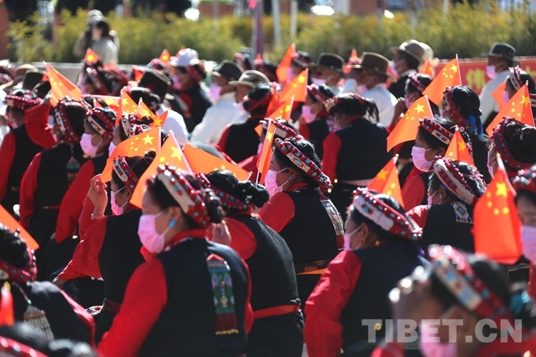 上午10時(shí)30分,伴隨著歌舞《歌頌幸福》,慶祝西藏百萬農(nóng)奴解放63周年專場(chǎng)文藝演出拉開帷幕?!睹飨扇藖怼贰豆湫鲁恰贰斗磙r(nóng)奴把歌唱》《新舊對(duì)比》等節(jié)目在現(xiàn)場(chǎng)掀起一個(gè)又一個(gè)高潮。舞臺(tái)下,滿是身著盛裝的各族群眾,不斷揮舞著手中的五星紅旗,臉上綻放著感動(dòng)和幸福的笑容。