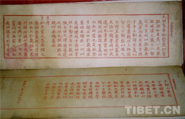 藏文古籍文獻是我國各民族交往交流交融的產(chǎn)物。就藏文古籍文獻中的精品典籍《大藏經(jīng)》而言,從公元7世紀(jì)佛教傳入吐蕃,開始本土化、中國化的進程中,高僧大德不斷進行翻譯、集結(jié)、傳抄、刻版、印刷,形成豐富多彩、卷帙浩繁的《甘珠爾》和《丹珠爾》。《大藏經(jīng)》集成、刊印、流傳離不開歷代中央政府和帝王將相、各民族信眾、高僧大德的支持。比如,西夏時期,黑水城等地首次出現(xiàn)了藏文經(jīng)咒的刻印本。有元一代,《甚深內(nèi)義明本釋》等經(jīng)典刻印本在元大都問世。12世紀(jì),納塘寺堪布覺丹熱智搜集編纂納塘《大藏經(jīng)》時,其弟子從上都一帶寄送了大量的內(nèi)地紙墨。明代,永樂和萬歷皇帝分別在南京和北京完整刊刻印刷藏文《甘珠爾》,開啟了大規(guī)模刊印藏文文獻的歷史。清代,康熙和乾隆朝,在北京刊印了北京版《甘珠爾》和《丹珠爾》,并把藏文《大藏經(jīng)》相繼翻譯成滿文、漢文、蒙古文等多種文字,為我國各民族交往交流交融起到了推動作用。藏文典籍文獻的刊印、流傳、保存,對藏語言文字規(guī)范、佛教文化保護傳承、不斷豐富民族文化等方面起到了重要作用。同時,也進一步促進了各民族交往交流交融。