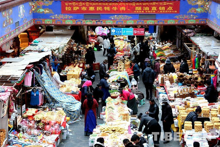 圖為藏歷水虎新年來臨前拉薩八廓商城內(nèi)各族群眾購買“年貨”歡度新年 攝影:王佳豪