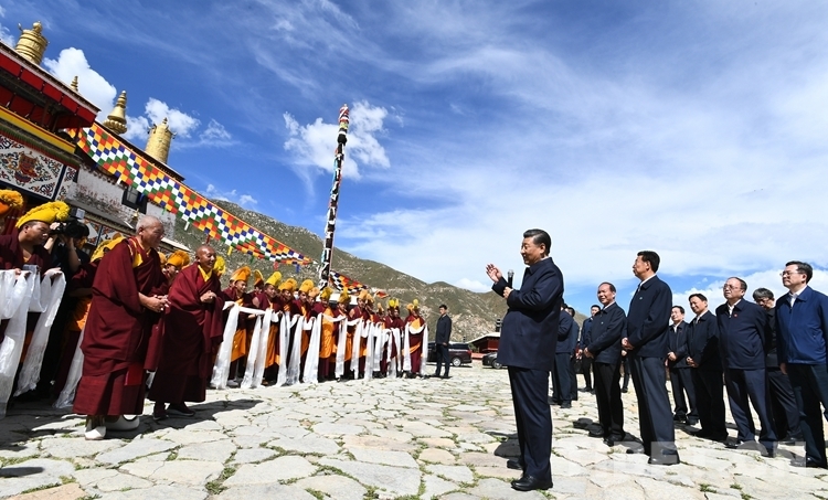 習(xí)近平總書記在哲蚌寺仔細(xì)察看了措欽大殿,認(rèn)真聽取西藏自治區(qū)宗教工作開展情況和哲蚌寺管委會加強創(chuàng)新寺廟管理工作情況的匯報,并在大殿廣場發(fā)表重要講話。