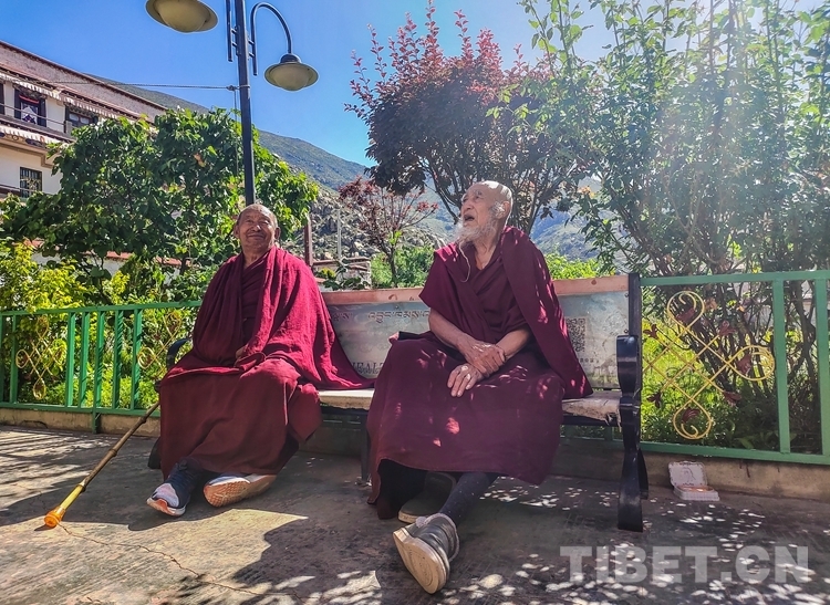 圖為僧人在寺廟養(yǎng)老院內(nèi)曬太陽。攝影:拉姆