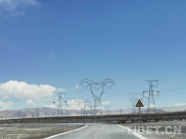 我們的車行駛在平均海拔超過4000米的318國道上,從日喀則市到昂仁縣、薩嘎縣、仲巴縣,車窗外的風(fēng)景不斷變化著。有廣袤無垠的平地,也有像孔唐拉姆山這樣俊秀挺拔的高山,還有像我們一樣在這蒼茫的大地上急速行駛的車輛。旅行途中一路陪伴我們的是一座座輸電鐵塔,它們或高聳入云,或有著“崗巴羊”羊頭一樣別致的造型。這一條風(fēng)景線,更是西藏的“光明線”。