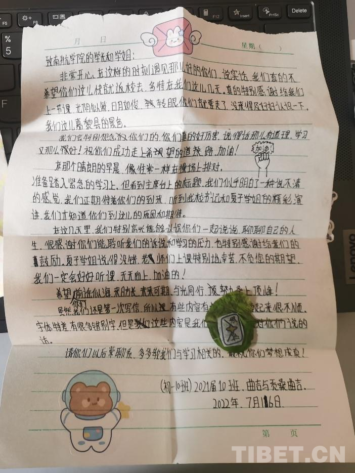 此次嘉黎之行,讓我真切地感受到了西藏同胞的純樸、熱情、善良。孩子們課堂上的認真思考、仔細演算、積極回答都給我們留下了深刻的印象。我們一起過林卡,一起吃飯,到家里做客……無數(shù)的言行舉止之間都流露出他們的講禮貌、重禮儀。我們也結(jié)識了為這片熱土奉獻多年青春的公安政委、校長、書記等等,正是他們的無私付出,讓雪域高原欣欣向榮,富強美麗。未來,我們也將與嘉黎縣中學建立長期的合作,號召更多南航學子為當?shù)貛ハM猓?/p>