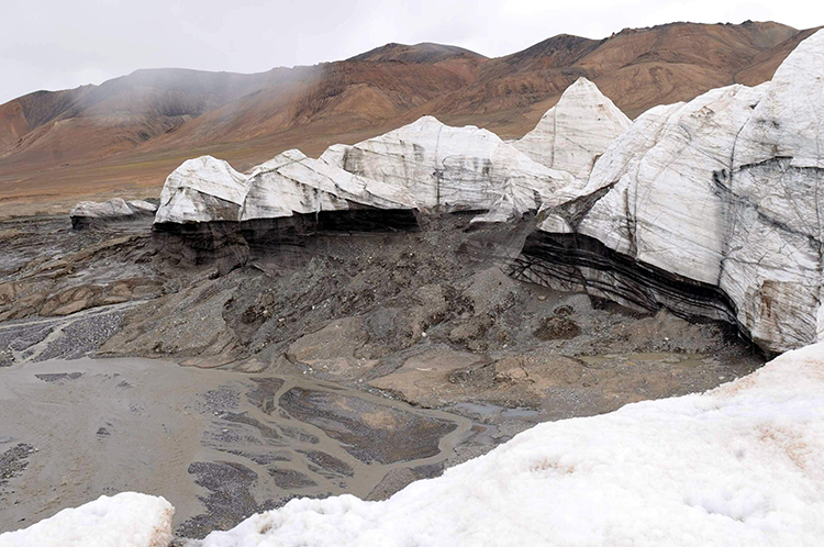 過河后我們停車,徒步在向?qū)У膸ьI(lǐng)下走向冰川。這就是被確認為除南極、北極以外的世界第三大冰川??!