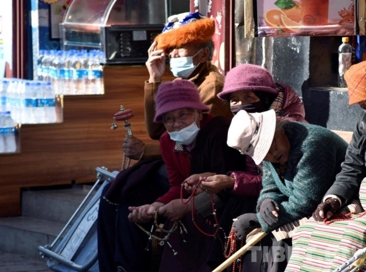 圖為八廓街上曬太陽的群眾