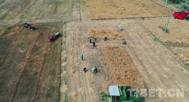 在達(dá)孜區(qū)唐嘎鄉(xiāng)唐嘎村,群眾正在收割青稞,金燦燦的青稞穗顆粒飽滿,豐收的喜悅寫在每個人的臉頰上。