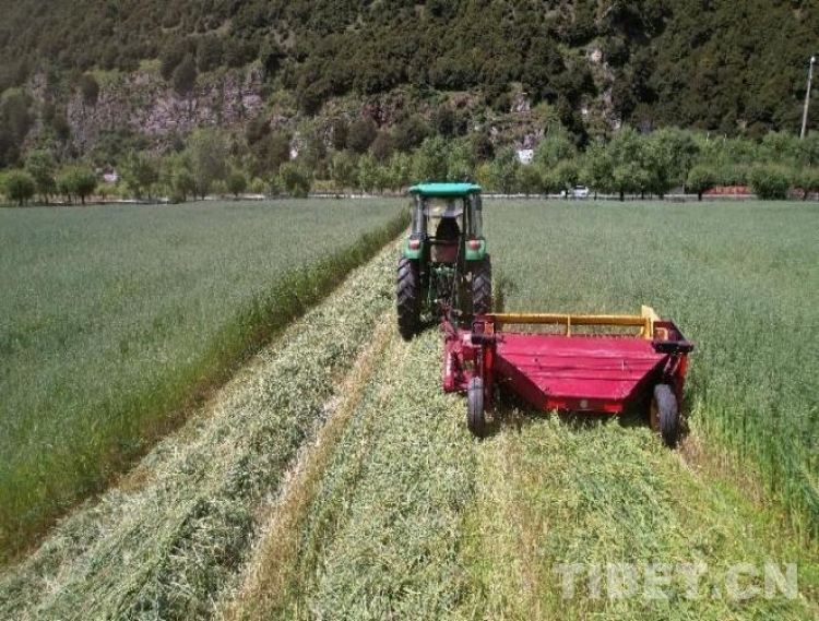 圖為國(guó)家牧草產(chǎn)業(yè)技術(shù)體系拉薩綜合試驗(yàn)站工布江達(dá)縣示范點(diǎn)秋收搶收(海拔3990米)