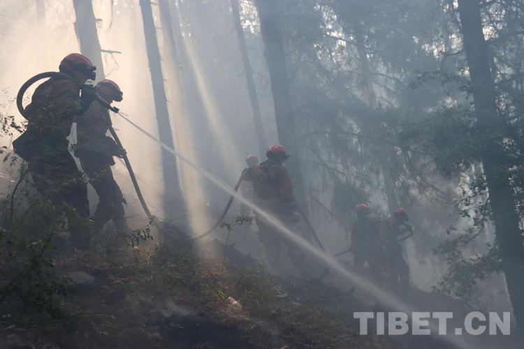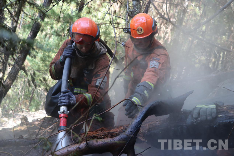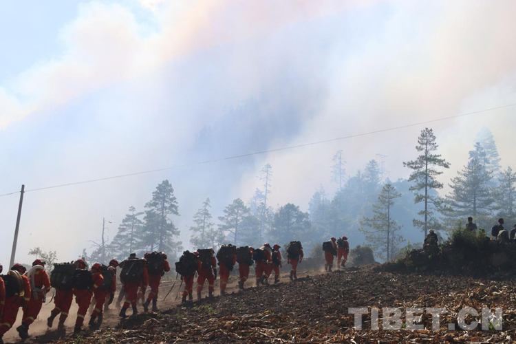 火場上,不說有感天動地的故事,但是那種“無畏火魔、不怕犧牲、舍我其誰、團結(jié)協(xié)作”的故事卻到處可見。那天,我們在接警后,第一時間趕赴現(xiàn)場,當(dāng)看到一條長長的火線猶如一條蜿蜒的巨龍盤旋在空檔村山腰,火舌在大風(fēng)助威下翻滾著向南側(cè)撲去時,飛哥和我各帶領(lǐng)10名黨員骨干以南北兩翼夾擊的陣勢迎戰(zhàn)火魔。在高達2800米的原始林區(qū),夜里溫度接近-5℃,槍頭手高琪已全身上下濕透并伴隨冰片的出現(xiàn),隱約透著讓人冷顫的寒光,顫抖的身體讓槍頭不斷左搖右擺,但他毅然肩扛槍頭,勇斗火魔。撲救完畢后,剛要準備休整,中隊接到殲滅山頂火點的任務(wù),火情就是命令,指戰(zhàn)員背著沉重的裝備在近70-80度的亂石陡坡上,抓著樹枝一步步向上攀爬,16年兵齡的王建紅在爬山過程中使勁喘息,即使空氣中彌漫著飛舞的灰,也為吸取更多的氧氣保持體力;接近山頂時,一顆直徑約80cm的滾石從山頂滾落,體型弱小的二級消防士曹橋在緊促的避險哨音中采取緊急避險措施成功躲避,滾石與他擦肩而過,但危險的環(huán)境未能抑制他戰(zhàn)斗的決心。中隊指戰(zhàn)員暢談此次滅火作戰(zhàn)感受時,都紛紛笑言:“我們從海拔2300米打到了3700米,相當(dāng)于從察隅到了拉薩?!?1日,中隊轉(zhuǎn)戰(zhàn)火場西南線,此時經(jīng)過5天的連續(xù)奮戰(zhàn),指戰(zhàn)員的思考能力和興奮的感覺消失殆盡,只剩下機械式行走的軀體,膝蓋有舊傷的戰(zhàn)斗班班長王明因為超負荷運動已疼痛難忍,但他在咬牙堅持。班長宋遠金、扎西歐珠主動擔(dān)當(dāng)不畏艱險,從不到2300多米的地方,背著滅火裝備和滿滿的水桶,爬到4000米的山頂排除隱患,清理煙點。