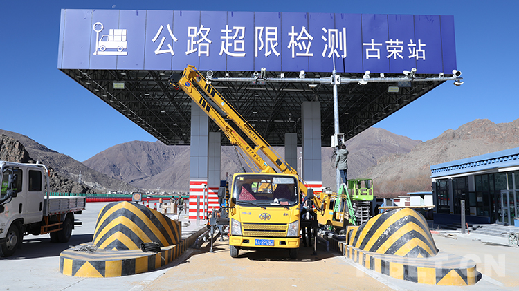 圖為工作人員在G6京藏高速公路那曲至拉薩段調(diào)試超限檢測設(shè)備
