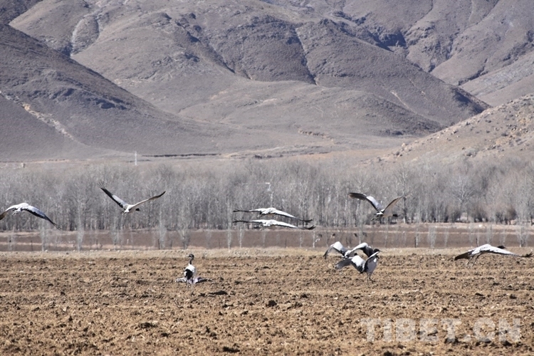中國(guó)西藏網(wǎng)訊 地處雅魯藏布江中游河谷地帶的西藏自治區(qū)拉薩市林周縣,被稱(chēng)為拉薩“糧倉(cāng)”。每年的冬季,林周縣虎頭山水庫(kù)因兩面夾山,周邊有大片的良田,成為黑頸鶴覓食、夜棲的佳地。
