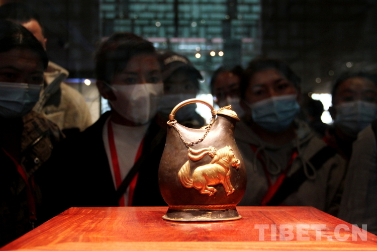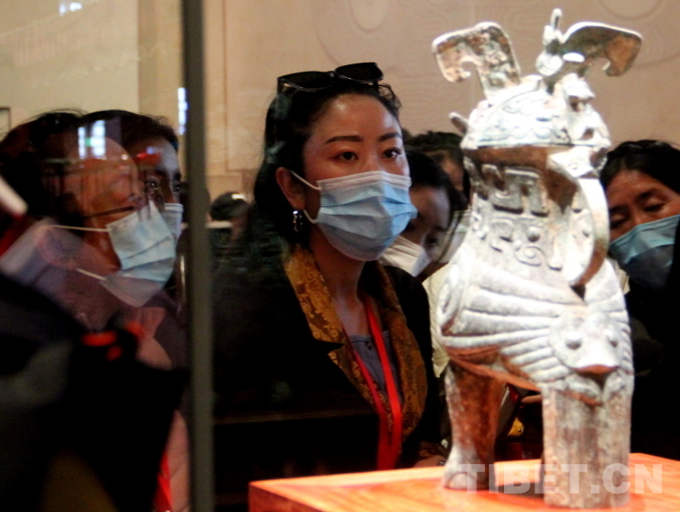 圖為2023年西藏基層婦聯(lián)干部赴京學習參觀團成員們在中國工藝美術館·中國非物質(zhì)文化遺產(chǎn)館內(nèi)欣賞唐代文物鎏金舞馬銜杯紋銀壺的復制件 攝影:劉莉