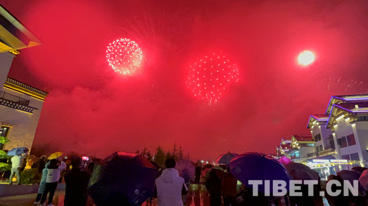 晚間,參加活動(dòng)的會(huì)員們?cè)谑袃?nèi)觀看了煙火表演。(中國西藏網(wǎng) 記者/王茜)