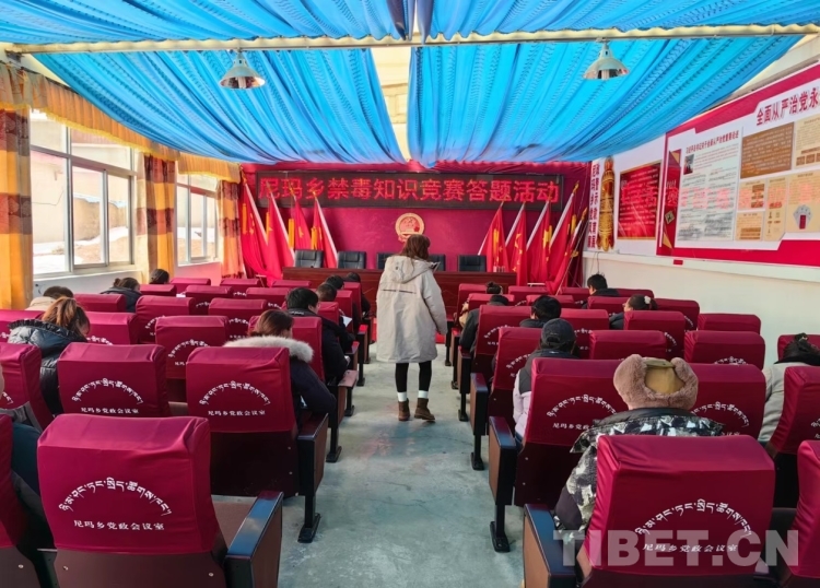 圖為那曲市尼瑪鄉(xiāng)舉辦禁毒知識(shí)競(jìng)賽活動(dòng)