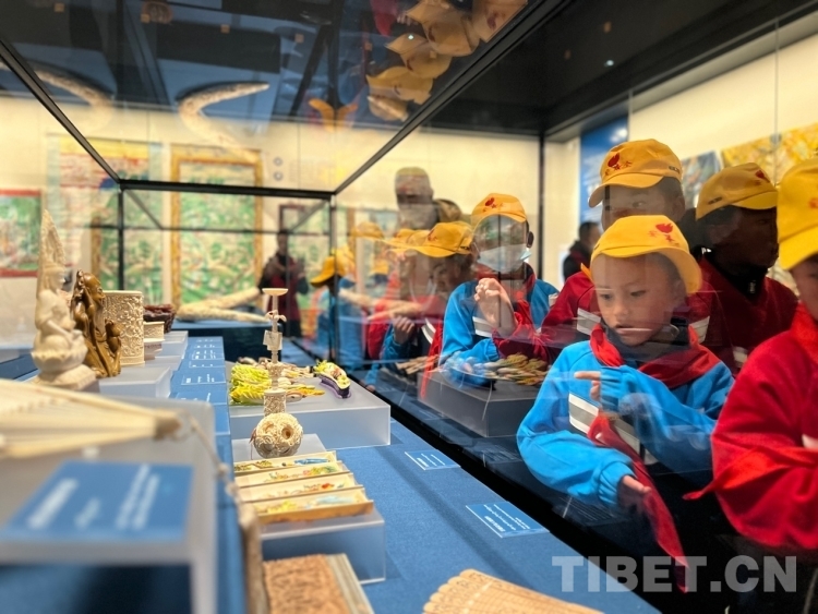 隨后學(xué)生們來(lái)到“離太陽(yáng)最近的人——西藏民俗文化展”,這里主要展示西藏獨(dú)具特色的生產(chǎn)生活習(xí)俗、各地服飾、各種農(nóng)事用具和生活用品、節(jié)慶文化以及西藏民俗文化等,場(chǎng)景化和實(shí)物展示讓孩子們對(duì)其背后的文化更容易入腦入心,理解透徹。“看,這里有打酥油桶、這個(gè)是黑帳篷、這個(gè)是織布機(jī)……”“家里的東西都在博物館?!薄吧洗芜^年時(shí)我吃到了瓷器,原來(lái)是好吃懶做的意思呀,哈哈哈?!焙⒆觽儊?lái)到西藏民俗文化展,對(duì)著展品展開了激烈的討論,看見平時(shí)生活中隨處可見的東西很多都在博物館時(shí),既覺得不可思議又感覺很親切。(中國(guó)西藏網(wǎng) 記者/德吉卓瑪)