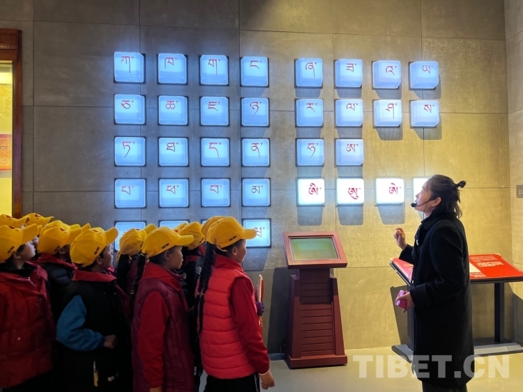 走進(jìn)“藏地智慧”,學(xué)生們一眼認(rèn)出藏文創(chuàng)始人吞彌·桑布扎,大家異口同聲回答講解員的問題說:“這是吞彌·桑布扎?!钡玫街v解員的肯定、并向他們講述背后的相關(guān)歷史后,學(xué)生們聽得很入迷,也更有信心面對接下來的問題。藏文的信息化使得這一古老文字煥發(fā)著全新而旺盛的生命力,在這里學(xué)生們欣賞藏文在智能手機(jī)、電腦、多功能點(diǎn)讀機(jī)等智能電子設(shè)備內(nèi)“走動(dòng)”、傳統(tǒng)農(nóng)牧業(yè)的模擬場景和現(xiàn)代化的機(jī)械設(shè)備圖、藏醫(yī)藥材、藏香藏紙制造和制鹽過程等獨(dú)具特色的藏族傳統(tǒng)手工藝,也能很好的回答講解員提出的問題,現(xiàn)場互動(dòng)氣氛熱烈。“這種活動(dòng)我們學(xué)校不會(huì)常有,當(dāng)孩子們聽到要去拉薩時(shí)像是要過年那樣高興,一路上問這問那地充滿好奇?!倍喟奏l(xiāng)小學(xué)的帶隊(duì)老師羅珍介紹:“這次參加活動(dòng)的這些學(xué)生都是三、四、五年級的學(xué)生,個(gè)個(gè)品學(xué)兼優(yōu)?!?/p>
