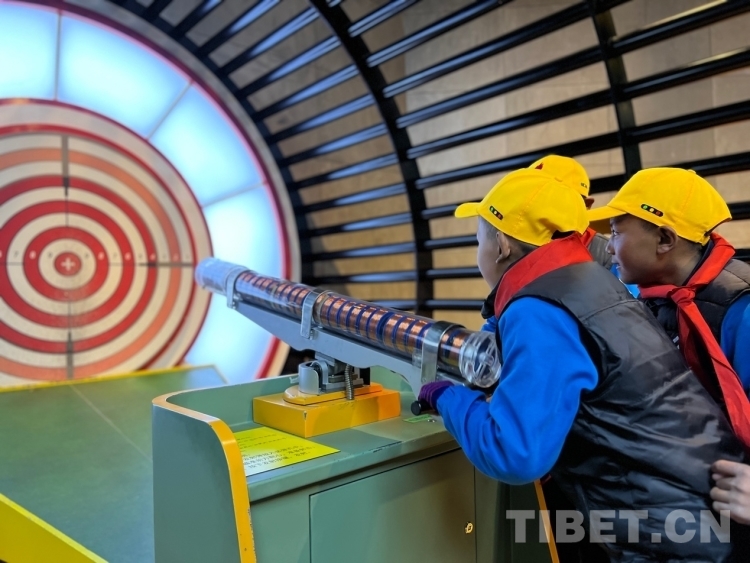 在講解員的帶領(lǐng)下學(xué)生們來到科技館,這里包括藏地智慧、科技樂園、科技前沿、體驗(yàn)世界屋脊等4個(gè)主題展區(qū),主要展示古老的西藏科技智慧、人類取得的科技成就及基礎(chǔ)科學(xué)知識、科技促進(jìn)人類的發(fā)展及西藏的開發(fā)建設(shè)、西藏高原生存環(huán)境的內(nèi)容。