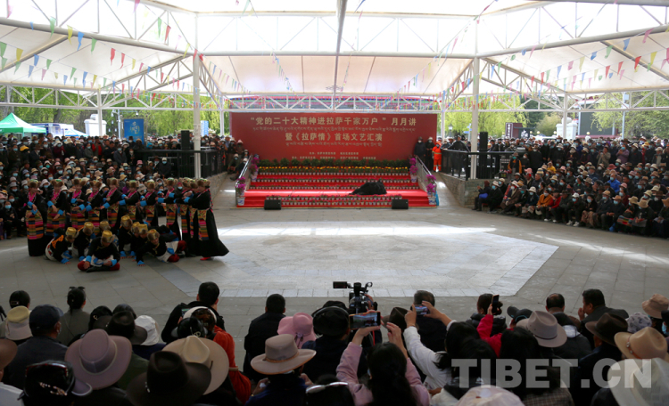 中國西藏網(wǎng)訊 4月26日上午,“黨的二十大精神進拉薩千家萬戶”月月講暨《拉薩情》首場文藝匯演在西藏自治區(qū)拉薩市宗角祿康公園舉行。