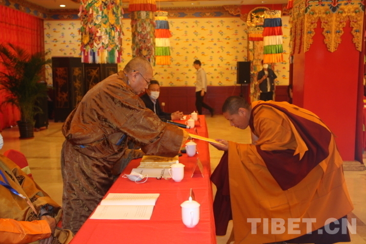 中國藏語系高級佛學(xué)院院長嘉木樣活佛向“拓然巴”高級學(xué)銜獲得者頒發(fā)證書 攝影:李一凡