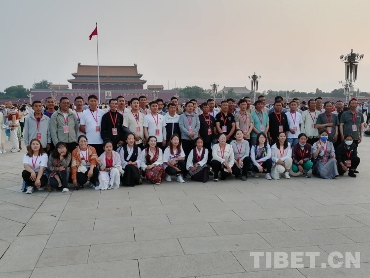 圖為西藏村居兩委基層干部赴京考察學(xué)習(xí)團(tuán)6月18日在天安門廣場觀看升旗后合影 圖片由北京建藏援藏工作者協(xié)會提供