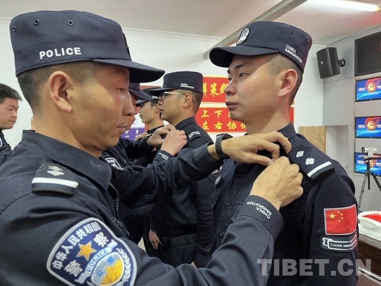 圖為阿里邊境管理支隊(duì)舉行為黨員民警佩戴黨員徽章儀式