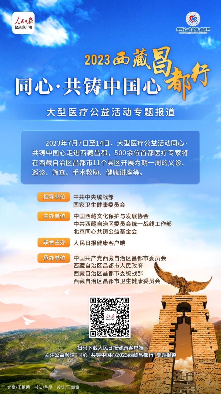 本次活動由中共中央統(tǒng)戰(zhàn)部、國家衛(wèi)健委指導,中國西藏文化保護與發(fā)展協(xié)會、中共西藏自治區(qū)委員會統(tǒng)一戰(zhàn)線工作部、北京同心共鑄公益基金會主辦,人民日報健康客戶端聯(lián)合主辦,將結合當?shù)亓餍胁W特點和醫(yī)療衛(wèi)生事業(yè)發(fā)展現(xiàn)狀,開展疾病篩查、義診巡診、高原手術、專業(yè)幫扶、健康科普和愛心捐贈等多種形式的健康幫扶工作。