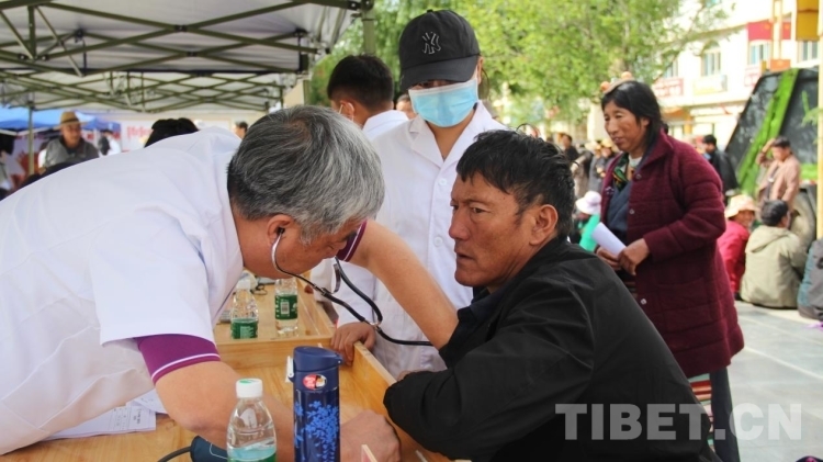 雖然大多數(shù)藏族群眾和醫(yī)生們存在溝通困難,但每位醫(yī)生旁邊專門有縣衛(wèi)生院工作人員進(jìn)行翻譯,絲毫不影響專家們向當(dāng)?shù)厝罕娫\斷看病和傳遞愛心。
