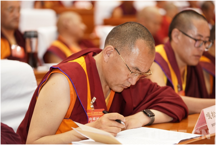 在安排部署下一步重點(diǎn)工作時(shí),班禪表示,推動(dòng)自我變革,開(kāi)展教義教規(guī)闡釋。發(fā)揮藏傳佛教界人士在推進(jìn)中國(guó)化中的主體作用,推動(dòng)沿著中國(guó)化方向健康傳承,引導(dǎo)藏傳佛教界人士切實(shí)增強(qiáng)自我變革的思想和行動(dòng)自覺(jué),以社會(huì)主義核心價(jià)值觀為引領(lǐng),在保持基本信仰、核心教義的前提下,促進(jìn)教義教規(guī)、管理制度、禮儀習(xí)俗、行為規(guī)范等方面逐步形成中國(guó)特色。實(shí)施藏傳佛教教義教規(guī)闡釋工程。引導(dǎo)藏傳佛教界對(duì)教義教規(guī)、藏傳佛教經(jīng)典選優(yōu)擇重、去粗取精、推陳出新,作出與中國(guó)國(guó)情、中華文化、中國(guó)特色社會(huì)主義相適應(yīng)的通俗易懂、與時(shí)俱進(jìn)地闡釋。引導(dǎo)藏傳佛教界人士在闡釋經(jīng)典、講經(jīng)說(shuō)法、日常生活中學(xué)習(xí)使用國(guó)家通用語(yǔ)言文字,開(kāi)展經(jīng)典翻譯、選編、注釋,挖掘教義思想中積極因素。爭(zhēng)做精進(jìn)修學(xué)、推進(jìn)藏傳佛教健康傳承的好僧尼,爭(zhēng)做守法遵規(guī)、弘揚(yáng)濟(jì)世利民優(yōu)良傳統(tǒng)的好僧尼,爭(zhēng)做立場(chǎng)堅(jiān)定、堅(jiān)決維護(hù)祖國(guó)統(tǒng)一和民族團(tuán)結(jié)的好僧尼。