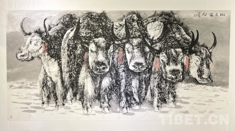 汪仕民介紹,此次《牦牛志·水墨西藏》個(gè)人作品展上,除了水墨作品外,還特地安排了一部分去年疫情封控期間的牦牛畫作和系列風(fēng)景作品配合這次的展出,希望特殊時(shí)期的作品與這次牦牛水墨系列作品能給拉薩市民帶來(lái)一份愜意,和饕鬄般美的享受盛宴?!拔乙蚕Mㄟ^(guò)這次兩百余幅畫作的展出,陶冶豐富拉薩的情操與文化生活,也為西藏文化藝術(shù)發(fā)展盡一份綿力?!蓖羰嗣裾f(shuō)。