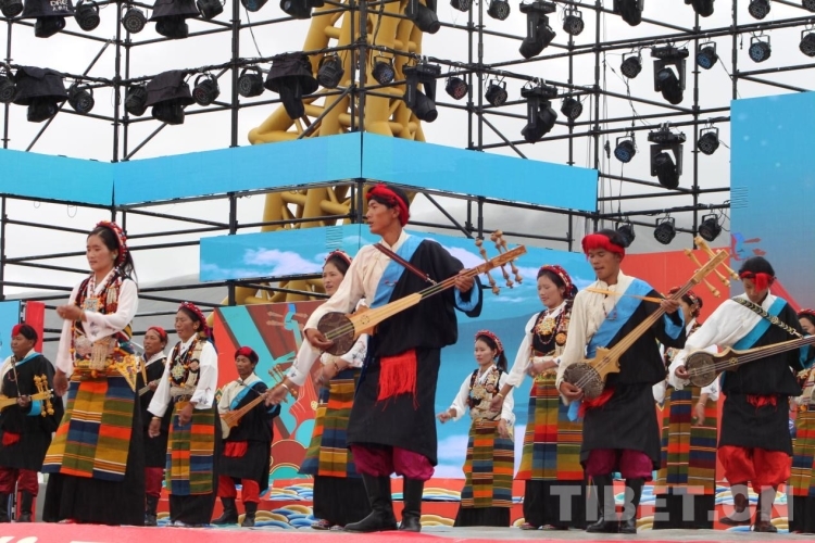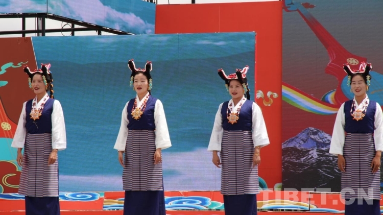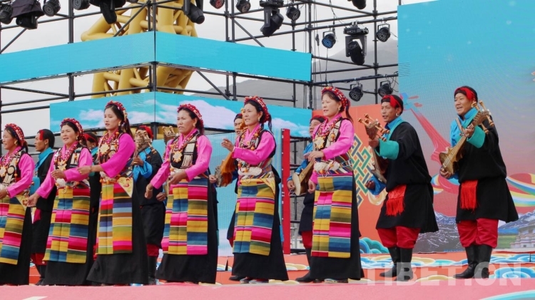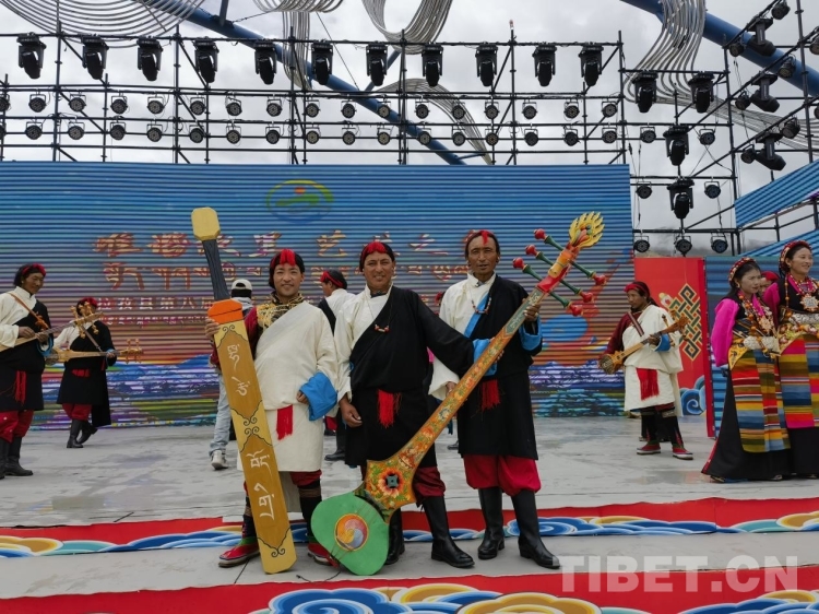 中國(guó)西藏網(wǎng)訊 8月4日,西藏日喀則拉孜縣在縣堆諧人民廣場(chǎng)舉辦下轄曲瑪鄉(xiāng)、拉孜鎮(zhèn)、彭措林鄉(xiāng)、熱薩鄉(xiāng)、曲下鎮(zhèn)等11個(gè)鄉(xiāng)鎮(zhèn)文藝演出隊(duì)堆諧文藝比賽。各鄉(xiāng)鎮(zhèn)代表演員穿著氆氌藏裝,男士們頭戴“扎秀”、人手一把扎念琴,女士們頭戴圓形“巴珠”頭飾、腰間系上五彩邦典等盛裝出席比賽現(xiàn)場(chǎng)。