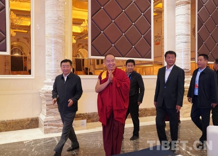 圖為班禪和出席活動的領(lǐng)導步入會場 攝影:王淑