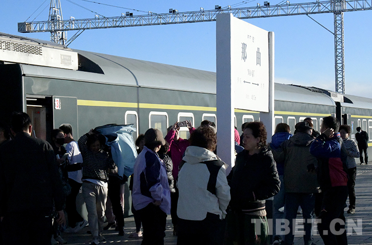 北京開往拉薩的Z21次京藏列車到達藏北首府的那曲站(唐召明2023年3月26日攝)