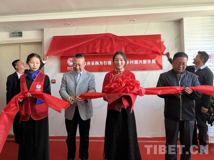 圖為相關(guān)領(lǐng)導為脫貧地區(qū)農(nóng)副產(chǎn)品網(wǎng)絡(luò)銷售平臺(簡稱:832平臺)西藏區(qū)域服務(wù)中心揭牌剪彩 攝影:德吉卓瑪