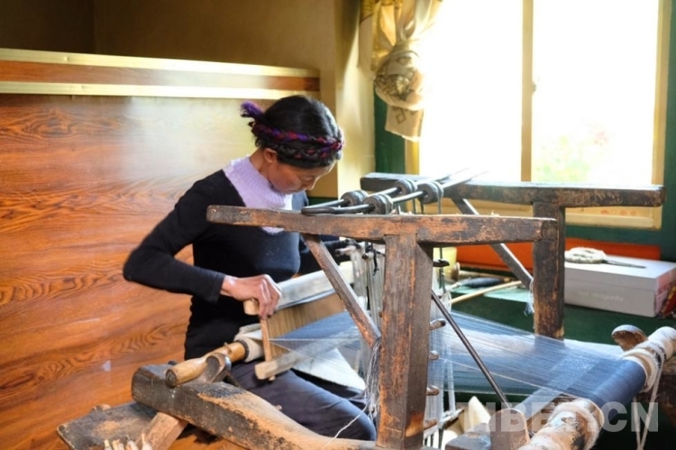 走進(jìn)氆氌紡織間,隊員們看到木質(zhì)的紡織機(jī)在吱嘎作響,工人左右手快速地配合,雙腳在幾個踏板間有條不紊地轉(zhuǎn)換,雙眼緊隨著雙手快速地游移目光,嫻熟程度令人嘆為觀止。