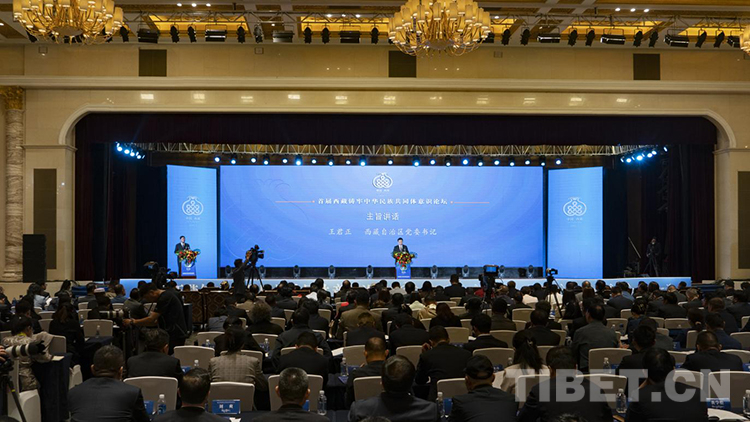 圖為首屆西藏鑄牢中華民族共同體意識(shí)論壇現(xiàn)場,西藏自治區(qū)黨委書記王君正出席并作主旨演講。 攝影:趙振宇