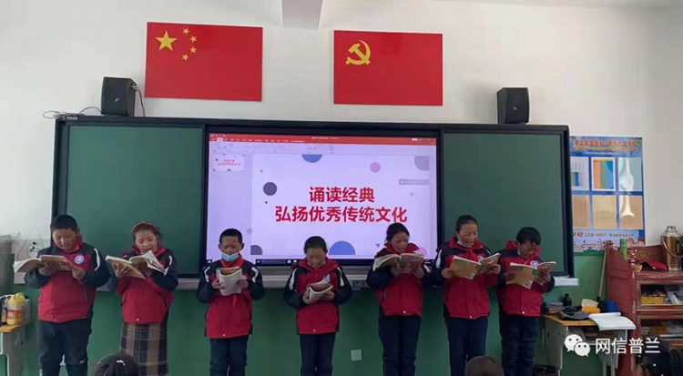 圖為巴嘎鄉(xiāng)小學(xué)舉辦誦讀經(jīng)典活動(dòng) 圖片來源:網(wǎng)信普蘭
