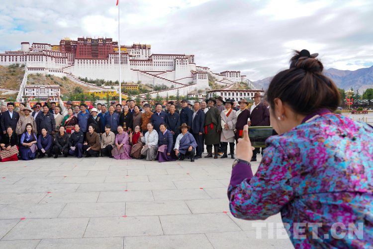 圖為升旗儀式結(jié)束后各族群眾在布達拉宮廣場前合影。 攝影:王淑
