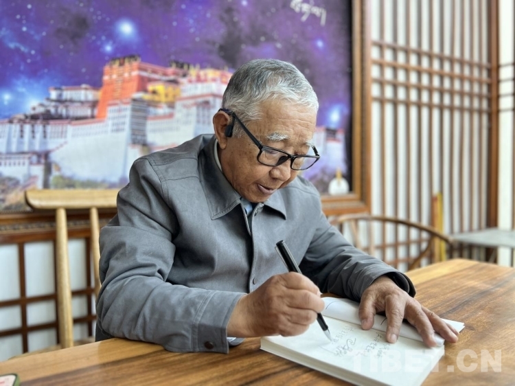 圖為巴桑羅布先生為讀者進(jìn)行簽名 攝影:德吉卓瑪