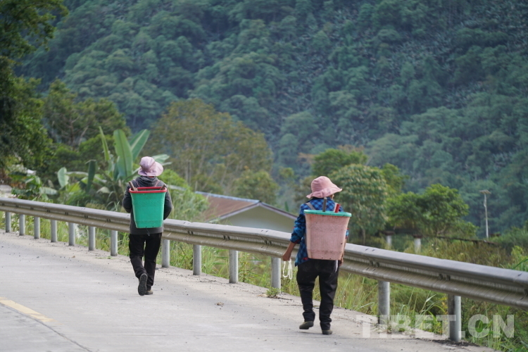 圖為行走在墨脫縣德興鄉(xiāng)鄉(xiāng)間公路上的村民,她們依然保留著背東西的習(xí)慣 攝影:趙振宇