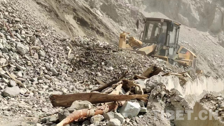 圖為墨脫縣交通運(yùn)輸局保通隊(duì)正在搶通因山體滑坡而阻斷的道路 資料圖片由西繞尼瑪提供