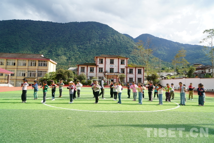 圖為墨脫縣完全小學(xué)學(xué)生正在標(biāo)準(zhǔn)化的操場(chǎng)里上體育課 攝影:趙振宇