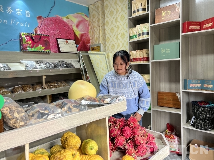 圖為正在自己水果店中忙碌的西繞措姆 攝影:德吉卓瑪