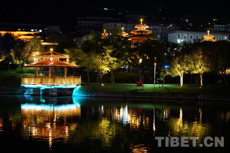 從福建援藏到廣東援藏,墨脫縣城的迅速發(fā)展離不開(kāi)援藏兄弟省份不遠(yuǎn)千里深入喜馬拉雅腹地,走進(jìn)這朵圣地蓮花。蓮花圣地公園是每一個(gè)來(lái)墨脫縣旅游的人必打卡的地方,這里曾經(jīng)是一片沼澤地,在廣東省第七批援藏工作隊(duì)的規(guī)劃和建設(shè)下于2016年4月竣工,如今有湖泊、曲廊、涼亭、籃球場(chǎng)等齊全的基礎(chǔ)設(shè)施和園林景觀,成為了游客和當(dāng)?shù)厝诵蓍e的好去處。夜幕降臨,蓮花圣地公園內(nèi)的景觀燈倒映在湖泊當(dāng)中,一位來(lái)自四川的游客一邊拍照一邊和同行伙伴說(shuō)“這里巴適得很?!?nbsp;
