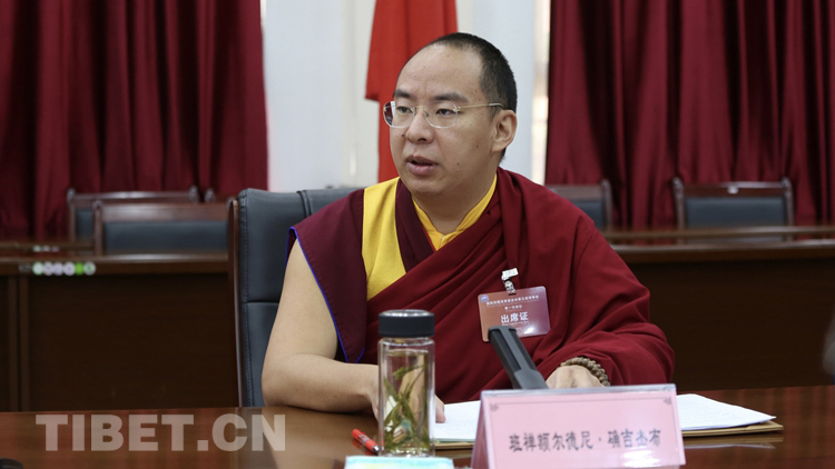 圖為援助西藏發(fā)展基金會(huì)第五屆理事會(huì)理事長(zhǎng)班禪額爾德尼·確吉杰布講話 攝影:旺啦