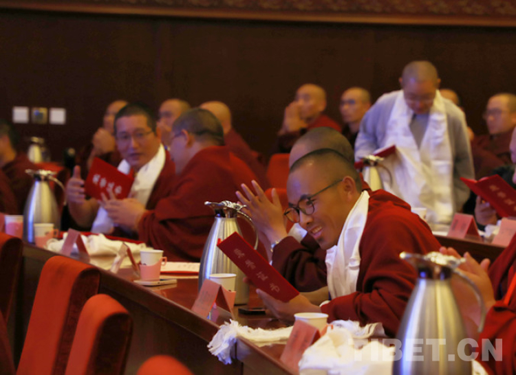 中國(guó)藏語(yǔ)系高級(jí)佛學(xué)院副院長(zhǎng)土多申格主持閉幕會(huì)主旨發(fā)言,副院長(zhǎng)郭莽倉(cāng)宣布教義闡釋論文獲獎(jiǎng)人員名單,與會(huì)領(lǐng)導(dǎo)向獲獎(jiǎng)?wù)撐淖髡哳C發(fā)證書(shū)。